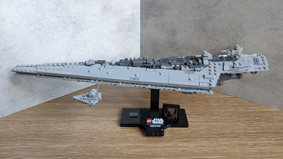 What’s especially cool is that, while there are no minifigures included, you do get a pair of smaller Star Destroyers. Attached via a transparent piece of Lego, they help lend the ship a real sense of scale. It features a removable stand, as well as an anniversary block, though I removed that because it felt a little out of place.